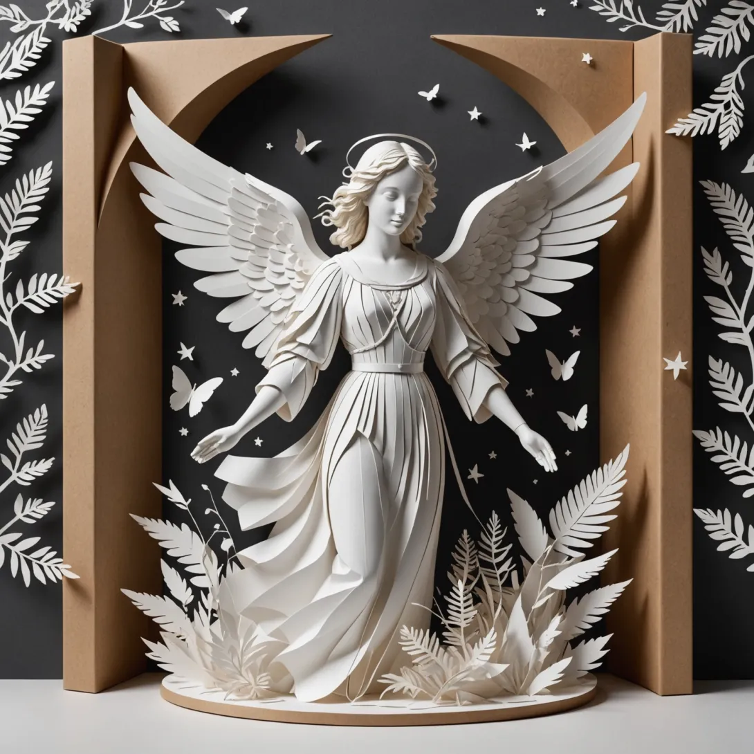 Объёмный ангел из бумаги — это поделка, которая выглядит как трёхмерная фигура, обычно с крыльями и телом, выполненными из сложенной или склеенной бумаги.