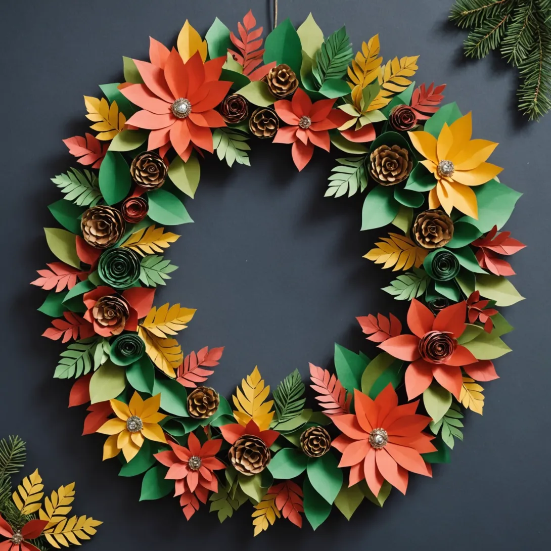 Новогодние венки из бумаги — это классика праздничного декора. Для их создания часто используют красные, зеленые, золотые и серебристые цвета, а также имитацию еловых веток из бумаги.